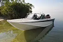 Моторная лодка может оснащаться подвесным мотором мощностью до 30 л. с. (Видео:[1])