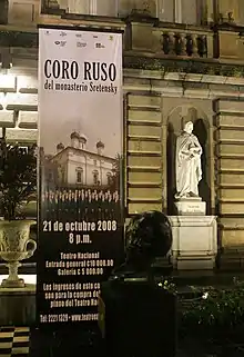 В тот же день президент Коста-Рики Оскар де Хесус Ариас Санчес посетил Национальный театр Коста-Рики, где была развернута выставка «Православная Русь» и прошёл концерт Хора московского Сретенского монастыря под управлением Никона Жилы. На выступление собралось около тысячи слушателей, заполнивших зал до отказа[28]. Там же состоялась беседа председателя митрополита Кирилла с Президентом Республики Коста-Рика[29].