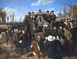 | 6 | 4—18 октября 1944 | Подавление Варшавского восстания | 3 октября 1944 | Варшава | Подавление восстания против нацистских оккупантов в Варшаве, начавшегося 1 августа 1944 года (потери поляков — до 10 тысяч погибших солдат, до 200 тысяч погибших среди мирного населения, до 6 тысяч пропавших без вести, до 15 тысяч попавших в плен, до 150 тысяч мирного населения вывезено на принудительные работы и в концлагеря, до 650 тысяч изгнано из Варшавы). | Распоряжение президента Польши в изгнании Владислава Рачкевича[3][4][1] |