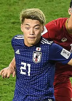 В декабре 2018 года был включён в заявку на Кубок Азии 2019. 9 января в первом матче группового этапа против Туркмении отличился голом на 71 минуте игры, сделав счёт 3:1. В итоге сборная Японии одержала победу 3:2. В четвертьфинальном матче против сборной Вьетнама, на 57-й минуте забил единственный гол с пенальти, который вывел Японию в полуфинал турнира.