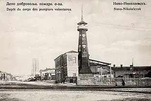 11 мая 1909 года в Новониколаевске произошёл крупный пожар, из-за которого огромная часть квартальной застройки была уничтожена. Дружина пожарного общества не смогла побороть распространявшийся по городу огонь. Обрушившаяся от пожара деревянная каланча погребла под собой обоз с бочками, лестницы и багры. Удалось отстоять лишь телефонную станцию и пожарный колокол. Прибывшей на помощь Закаменской команде пожарных также не удалось исправить ситуацию.