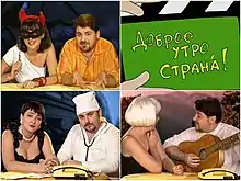 «Доброе утро, страна!» — это полчаса популярных видеоклипов, её ведущими были кабаре-дуэт «Академия», и вместе эту программу они вели около 5 лет. Изначально в 1995 году передача выходила слитно со схожей передачей «Утренняя почта». 12 января 1997 года программа стала выходить на РТР до самого закрытия. В 2002 году после развода с Александром Цекало, который ушёл из программы ради других проектов (в том числе и программы «Алчность» на НТВ[6]), Лолита Милявская стала вести одна (первый эфир — 9 марта 2002 года). И поэтому в конце каждой программы рядом с Лолитой был приглашённый артист. Так же с 1997 по 1998 год была рубрика «Сам себя не похвалишь», где показывали интервью артистов.