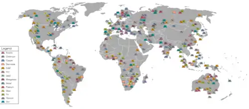 Постоянно увеличивались темпы роста добычи полезных ископаемых. Из всего объёма полезных ископаемых, извлечённых из недр земли за всю историю человечества, преобладающий их объём добыт в XX веке: нефти — 99,5 %, угля — 90 %, железной руды — 87 %, медной руды — 80 %, золота — 70 %. Поиск и освоение новых месторождений охватили практически всю приповерхностную часть земной коры, включая прибрежный шельф и дно Мирового океана[2][3].