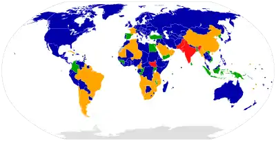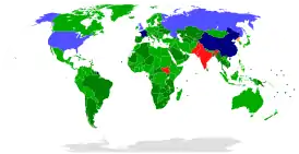 1-е десятилетие: ратифицировали или присоединились в 1968—1977 гг. 2-е десятилетие: ратифицировали или присоединились в 1978—1987 гг. 3-е десятилетие: ратифицировали или присоединились после 1988 года Не подписали (Индия, Израиль, Пакистан, Южный Судан)
