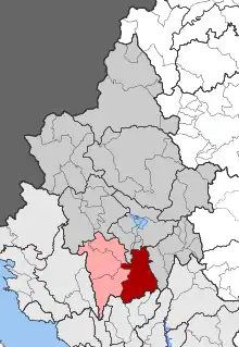 Административное деление общины: 1 — Айос-Димитриос 2 — сверху вниз: Додони, Сели, Лака-Сулиу
