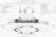 К классу додредноутов в широком значении этого слова относили эскадренные (т. н. «классические») броненосцы, строившееся с начала 1890-х годов и отличавшиеся некой стандартизацией, в отличие от броненосцев 70-х и 80-х годов XIX века. Основоположниками данных кораблей послужили английские броненосцы типа «Маджестик». Типичный броненосец представлял собой корабль, построенный из стали, с поясной закалённой броней, имел главную батарею из четырёх крупнокалиберных орудий в двух оконечных башнях, с размещённой по бортам батареей орудий среднего калибра, а также малокалиберными орудиями, выполняющими функции противоминной артиллерии. В качестве двигательной установки на додредноутах использовалась паровая машина тройного расширения.
