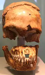 Тотавельский человек из Араго (Caune de l’Arago) в коммуне Тотавель датируется возрастом 450 тыс. лет[10]. К Homo heidelbergensis относятся останки из Монморен[11].