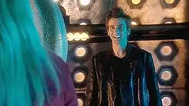 Роза испуганно спрашивает, кто он, и когда он ей отвечает, что он Доктор, она не верит ему. Она предполагает, что он заменил Доктора с помощью телепортации или что он сливин. Роза требует вернуть Доктора обратно. Доктор успокаивает её, напоминая, как они впервые встретились в подвале магазина, где работала Роза — Доктор взял её за руку и крикнул: «Беги!»[1]