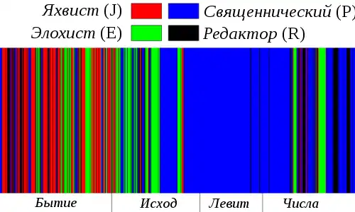 - Распределение документов в Пятикнижии из книги Richard Elliott Friedman, Who Wrote the Bible