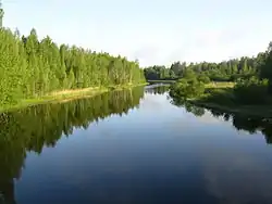 Долгая выше моста у деревни Загорье (разлив от небольшой плотины, расположенной ниже по течению). | |