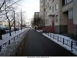 Улица представляет собой бульвар. В её центре — Долгоозёрный сквер. В квартале между Комендантским проспектом и Проспектом Королёва находится администрация МО Юнтолово. На пересечении с Планерной улицей находится единственный в МО Юнтолово храм, имени Святого Николая Чудотворца, построенный в 2008 году. Автор проекта — архитектор Е. В. Бойцова.