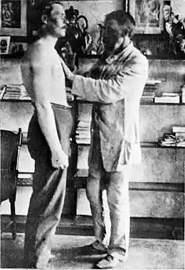 Проживая в Туле, через домашнего врача семьи Толстых М. М. Холевинскую познакомился с Львом Николаевичем Толстым, вместе с женой гостил у него в Ясной Поляне[3].