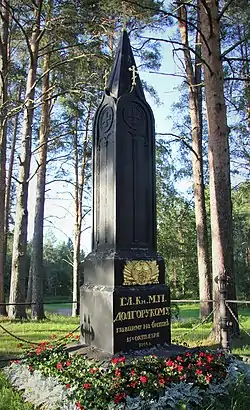 Князь Михаил Петрович Долгоруков (18 [29] ноября 1780 — 15 [27] октября 1808, Ийсалми, Savolax and Karelia County[d]) — генерал-майор, генерал-адъютант из рода Долгоруковых, младший брат князей Владимира и Петра. Один из самых близких товарищей Александра I. Погиб в бою при Иденсальми.
