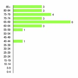 | Жителей | 269 | 357 | 366 | 264 | 226 | 100 | 60 | 44 | 24 |