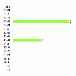 | Жителей | 151 | 184 | 192 | 134 | 53 | 14 | 18 | 16 | 3 |