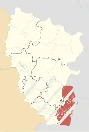 Район в укрупнённых границах с 17 июля 2020 года номинально делится на 2 городские территориальные общины (громады)[3][1]: