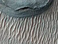Слоистость обнаружена также на дне каньона Копрат. На Земле такого рода структуры образуются из осадочных пород, которые постепенно накапливаются на дне больших водоёмов. Точно также слоистые пласты на Марсе могут состоять из осадочных пород, образовавшихся на дне древних озёр и морей. Однако исследователи призывают относиться к этой гипотезе с осторожностью, поскольку слоистая структура может быть обязана своим появлением совершенно иным процессам. Тем не менее, из-за возможной связи между ископаемыми остатками живых организмов и водой, пласты, подобные изображённым здесь, представляются наиболее подходящих местом для будущих поисков жизни на Марсе.