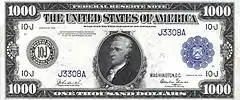 - Первый министр финансов Александр Гамильтон (англ. Alexander Hamilton) — на банкноте в 1000 долларов 1918 года.