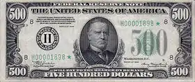 - 25-й Президент США Уильям Мак-Кинли (англ. William McKinley) — на банкноте в 500 долларов 1934 года.