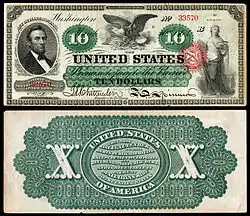 Банкноты времён Гражданской войны (Greenbacks). 10 долларов, 1863 г.
