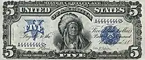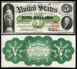 Банкноты времён Гражданской войны (Greenbacks). 5 долларов, 1862 г.