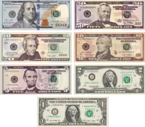 Базовый дизайн большинства долларовых банкнот был утверждён в 1928 году. На банкнотах изображены портреты государственных деятелей США: