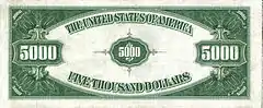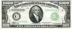 Также существуют поныне действительные банкноты номиналом в 500, 1000, 5000, 10 000 долларов. Они выпускались до 1945 года, а с 1969 года официально изымаются из обращения (по причине использования электронных банковских платежей)[5]. Их бонистическая стоимость намного выше номинала. К примеру стоимость пятитысячной банкноты на аукционах может доходить до 10 000 долларов США[6]. Из всех выпущенных банкнот номиналом 10 000 долларов, количество которых отслеживается ФРС и последний выпуск которых был в 1944 году (серия 1934 года), не изъяты из обращения только 336 штук, а номиналом 5 000 долларов — 342 штуки[7].