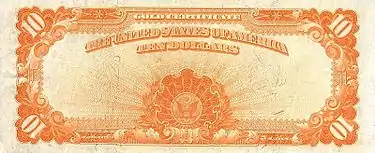 Золотой сертификат 10 долларов 1907 г. Аверс и реверс