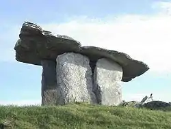 Дольме́ны (от брет. taol maen — каменный стол) — древние погребальные и культовые сооружения, относящиеся к категории мегалитов (то есть к сооружениям, сложенным из больших камней). Название происходит от внешнего вида обычных для Европы конструкций — приподнятой на каменных опорах плиты, напоминающей стол[1].