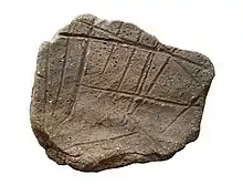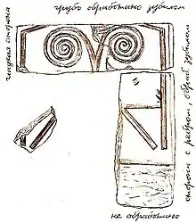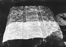 - Эта плита ещё в древности подверглась разделке на прямоугольные блоки.