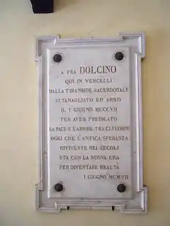 Дольчино (итал. Fra Dolcino; около 1250 — 1 июня 1307[2][3]) — ересиарх, глава секты «апостольских братьев» (апостоликов) и связанного с ней народного движения на территории современных итальянских провинций Новара и Верчелли. Настоящее имя его осталось неизвестным, своё прозвище же, которое можно перевести как «Сладчайший», он, вероятно, получил за красноречие.