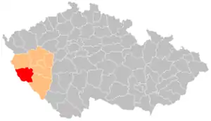 Расположен на юго-западе края. Граничит с районами Пльзень-юг, Тахов и Клатови Пльзенского края. На юго-западе — государственная граница с Германией.