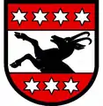 Коза изображена на гербах некоторых городов.