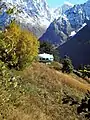 На расстоянии около 2,5 км от центра посёлка в направлении к Алибекскому леднику расположено Мемориальное кладбище альпинистов.