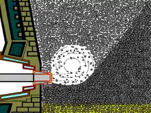 Частичное окисление кислородом дутья элементов чугуна, значительная часть капель которого стекает из зоны когезии через фурменные зоны и отбрасывается к противоположной границе фурменной зоны. Сюда же отбрасываются и капли шлака, стекающего из зоны плавления над фурменными зонами. Образующиеся при окислении элементов чугуна оксиды металлов переходят в шлаки и полностью или частично восстанавливаются затем углеродом коксовой насадки или кремнием чугуна[12].