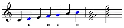 Для примера рассмотрим звукоряд До-мажора (C, D, E, F, G, A, B, C — до, ре, ми, фа, соль, ля, си, до):