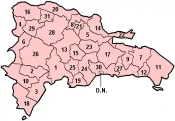 Доминиканская Республика делится на 31 провинцию и Национальный округ.