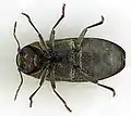 Тело чёрно-бурое или красно-бурое, в длину достигает от 4,8 до 7 мм[2]. С обеих сторон углов переднеспинки имеются два пятна из золотистых волосков. Среднегрудь с глубоким желобком по всей длине. На заднегруди этот желобок продолжается только в передней её части[4].