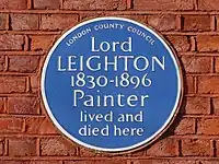 Мемориальная синяя табличка на стене Лейтон-хауса