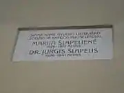 - Istorija (лит.). Marijos ir Jurgio Šlapelių namas-muziejus (2016). Дата обращения: 11 декабря 2016.