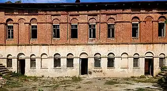 При строительстве первого этажа использовались местные белые скалистые камни, второго этажа – варёный красный кирпич. Композиция фасада построена на основе трех огромных окон-шебеке и двух глубоких ниш, расположенных рядом с ними и немного переходящих и на первый этаж.