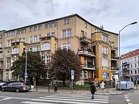 Архитектор В. Трост был автором первого проекта доходного дома, созданного в 1894 году для торговца Луиса Кона. Три года спустя участок был приобретен архитектором Вильгельмом Циммерманом. Циммерман изменив первоначальный проект и возвел четырехэтажное угловое здание. С 1905 года до Второй мировой войны здание еще несколько раз переходило из рук в руки. Во время бомбардировок Щецина крыша здания была разрушена вместе с третьим этажом[1]. После окончания войны здание было перестроено в упрощенном виде без восстановления поврежденных деталей. Через некоторое время скатная крыша была снята и надстроен дополнительный этаж[2][3].