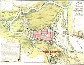Замок на карте 1758 года