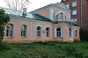 Здание в плане имеет Г-образную форму. Главный западный фасад дома выполнен в трёхчастной схеме, имеет полукруглый выступ и мезонин с балконом. Профилированность карнизов, фриза, фронтона придают особняку облик, характерный для русской классической архитектуры XIX века. В 1880-х годах прямоугольные окна были переделаны в арочные. В 1925 году были сделаны пристройки на три окна с северной и восточной сторон, нарушившие симметрию фасада. В доме сохранилось анфиладное расположение дверей, соединяющих эркерный зал с примыкающими помещениями, и металлическая лестница, ведущая в мезонин[5][2].