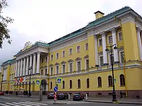 Дом был построен в 1817—1820 годах по проекту архитектора Огюста Монферрана (1786—1858). Здание в плане имеет треугольный вид. Его главный фасад, обращённый к Адмиралтейскому проспекту, украшен 8-колонным портиком коринфского ордера. Портик возвышается над выступающей вперёд аркадой. Пандусы (отлогие подъёмы) давали возможность каретам подъезжать непосредственно к парадному входу. Львы, стоящие по сторонам подъезда, высечены из белого каррарского мрамора скульптором П. Трискорни.