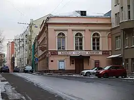 Расположен в Москве по адресу Милютинский переулок, 19, стр.1. / Сретенский бульвар, 4, стр. 1. Архитектор М. Д. Быковский.[2]