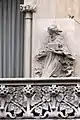 По краям широких балконов третьего этажа Арнау посадил четверых девушек, олицетворяющих технический прогресс (как его представляли себе в начале XX века). Каждая из них держит в руках одно из новейших достижений техники — фотоаппарат, телефон, фонограф и электрическую лампочку.