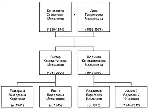 - См. К. Мельников. Авторские изменения в планировке 1-го этажа дома для размещения в нём квартиры с отдельным входом для семьи В. Мельникова. Начало 1950-х гг. Правки на светокопии 1920-х гг. Архив Дома Мельникова, Оп. 661, л. 1. Опубликовано в книге: Кузнецов П.. Дом Мельникова. Шедевр авангарда, жилой дом, архитектурный музей. Берлин, 2017, стр. 118—119