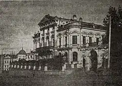 Здание построено в стиле позднего русского классицизма в 1820 году предположительно по проекту архитектора И. И. Свиязева. Затем в 1885—1886 гг. перестроено по проекту архитектора А. Б. Турчевича под влиянием стиля живописный модерн[3]. Кроме самого здания в то же время была выстроена красивая каменная ротонда из красного кирпича, но в советское время она была снесена.