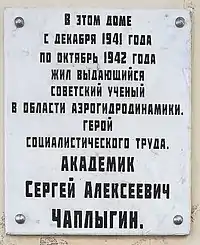 - Чаплыгин Сергей Алексеевич. Памятные доски Новосибирска. (недоступная ссылка). Дата обращения: 26 марта 2018. Архивировано 26 марта 2018 года.